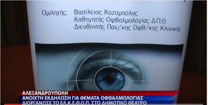 Στον παρακάτω σύνδεσμο παρακολουθείστε απόσπασμα της εκδήλωσης του ΕΛΚΕΘΟΠ (Ελληνικό Κέντρο Έρευνας & Θεραπείας Οφθαλμολογικών Παθήσεων)