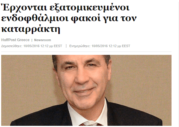Δηλώσεις του καθ. Κοζομπόλη στην Huffington Post σχετικά με τις ραγδαίες εξελίξεις στην οφθαλμολογία